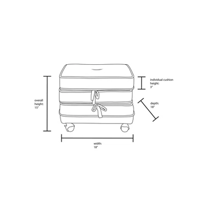 • 3-tier design with a loop and tie doubles it into 3 small poufs or footrests