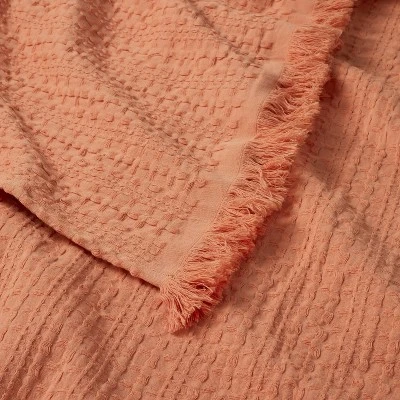 - Waffle-weave design in a solid hue and fringes along the edges bring eye-catching flair to your decor